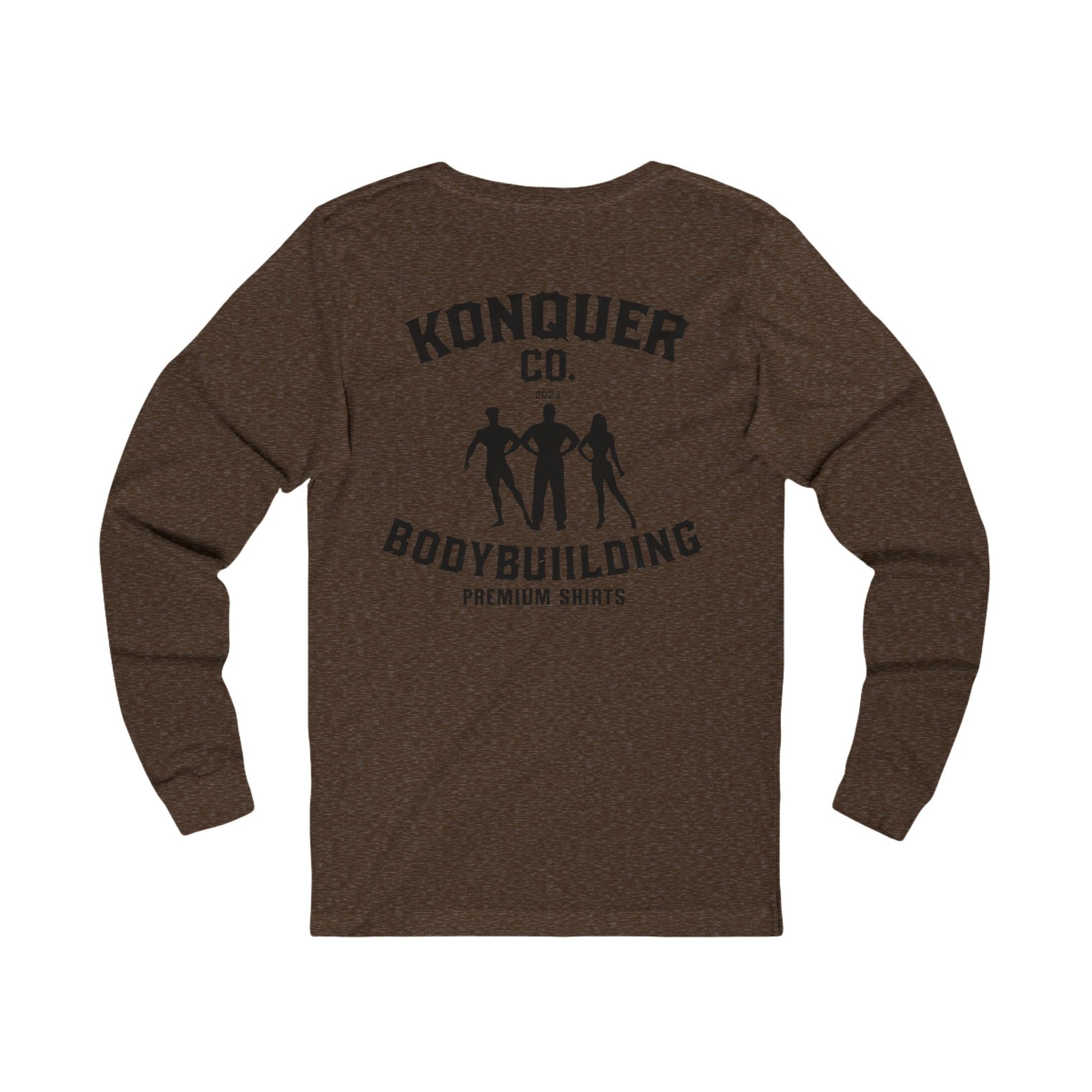This classic Konquer Co. unisex long sleeve tee fits like a well-loved favorite club shirt. Casually fitting with an excellent quality print, it is an irreplaceable everyday item for anyone seriously hitting the gym.